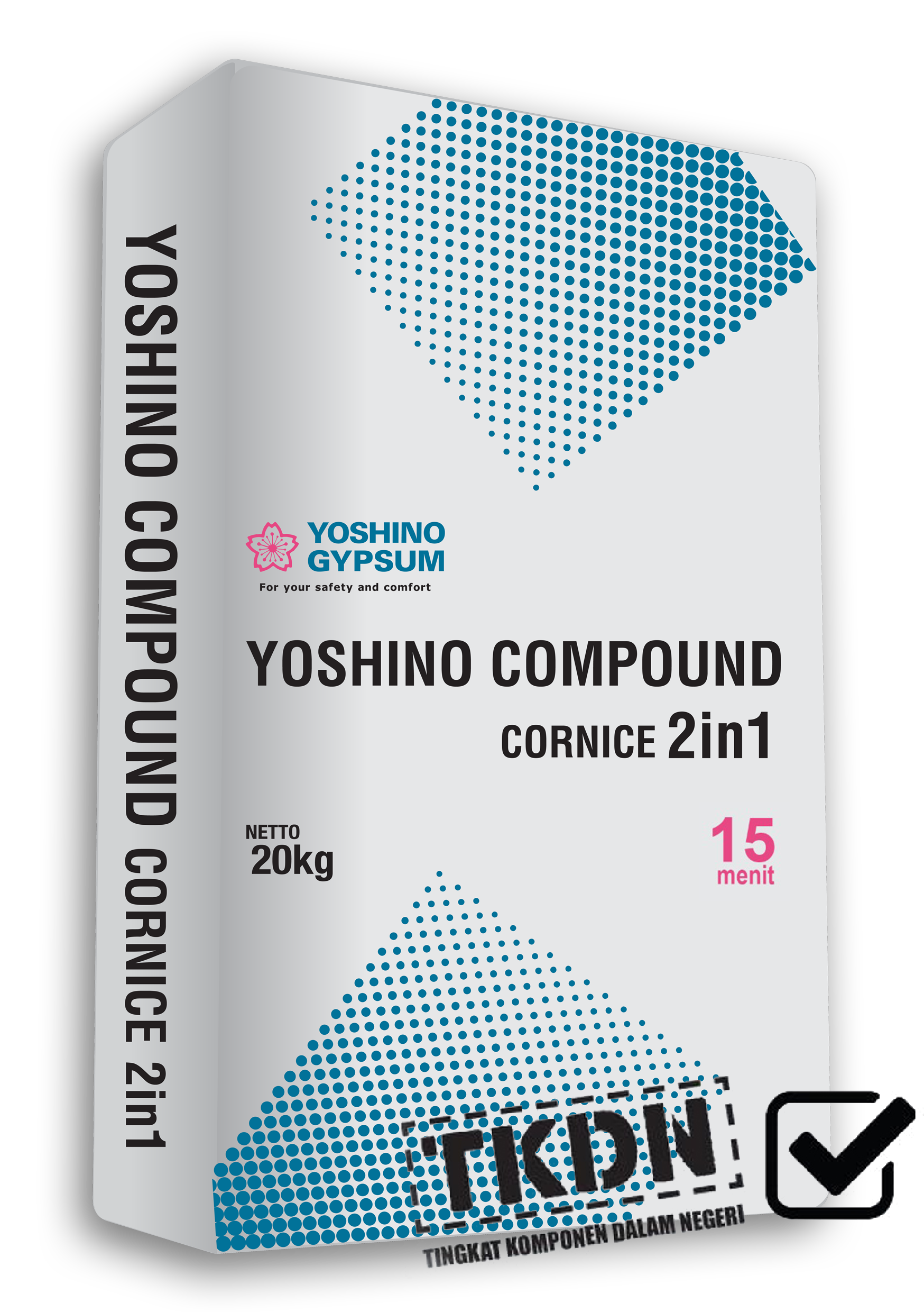 Yoshino Compound Cornice 2 in 1 diaplikasikan untuk mengisi celah antar papan gipsum (jointing) dan sebagai perekat adapun kegunaan produk sebagai berikut :